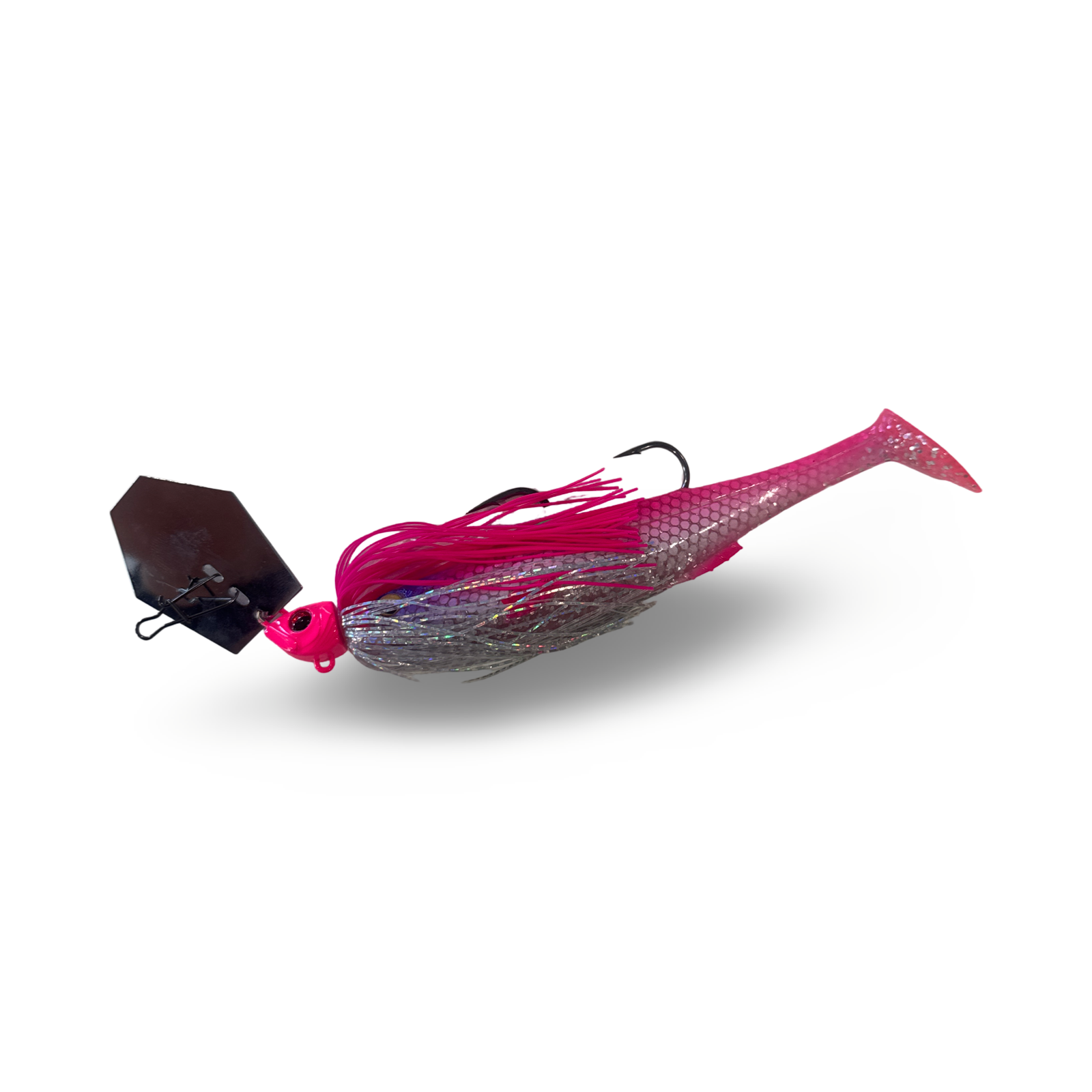Other keys features are high quality ultra shiny blades, 3d eyes and slick head design. The Grunta is the ultimate search bait through weed, structure and open water from its noisy and aggressive vibration drawing fish in from a long way.